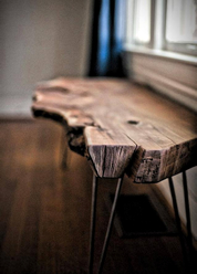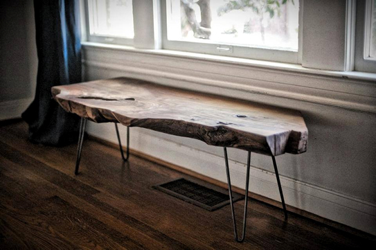 a custom window table/bench made out of a locally harvested (MISSOURI), RED CEDAR live edge slab and raw steel hairpin legs. finished with an all-natural danish oil. completed June 2013.