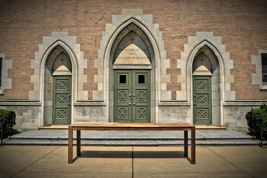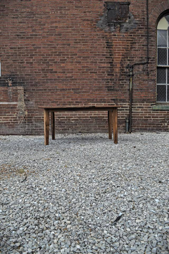 belief: represented by the new, clear and select wood on the other end of the table top and the two new, st. louis-harvested natural walnut legs. this wood is in opposition to the rustic, torn and warn wood on the opposite end of the table because belief in Jesus Christ as your personal savior — according to the Bible, is the only way that a human life can be restored from sin and put back on the path of God's will.