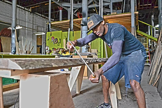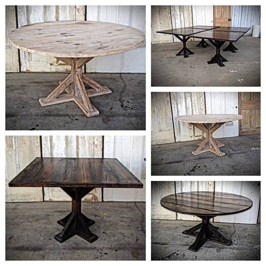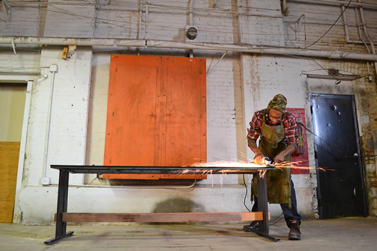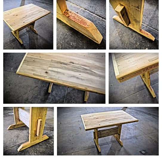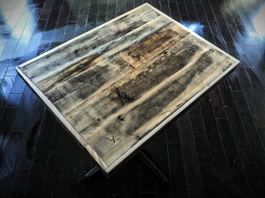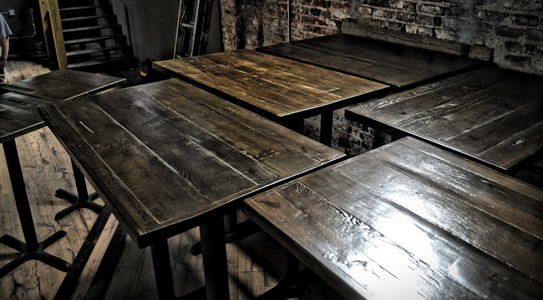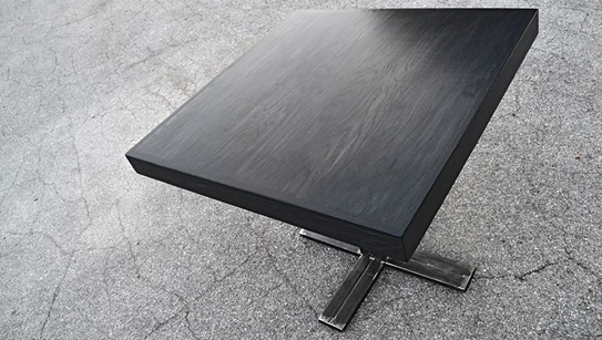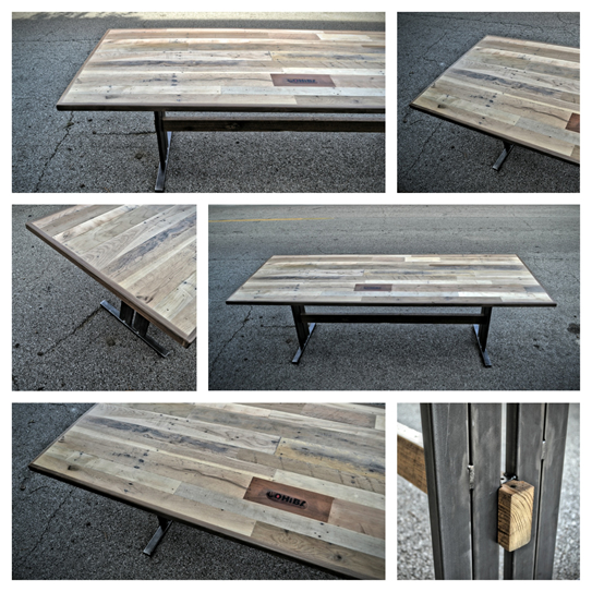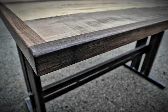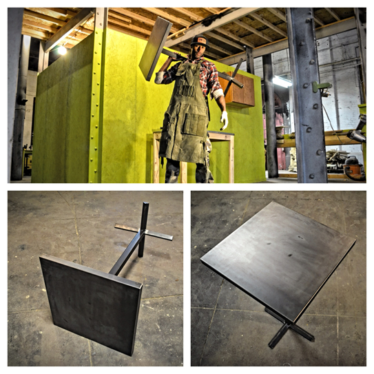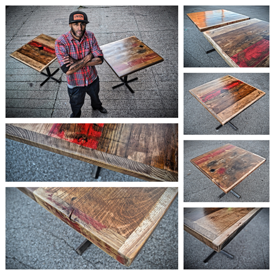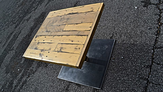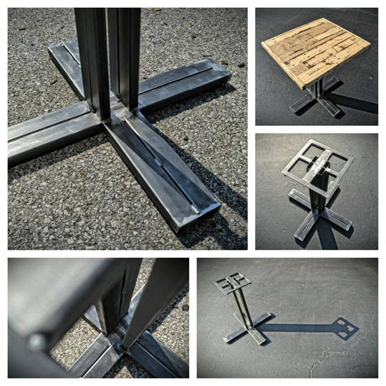 we are fabricating 11 tables for the restaurant . our fabrication will include both wood top and steel base. the steel bases will be hand made and welded out of raw steel with exposed welds for four different table sizes. a few of the tables are trestle table hybrids with very masculine features. the majority of the tables are table height but a few will be bar height. the wood top will be +/- 1-1/8” thick and made out of various reclaimed and/or repurposed woods with lots of character and finished with a zero-VOC, satin topcoat finish.