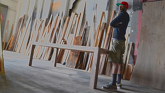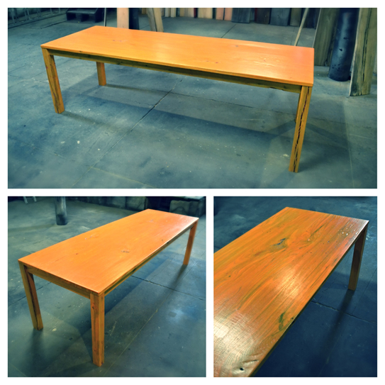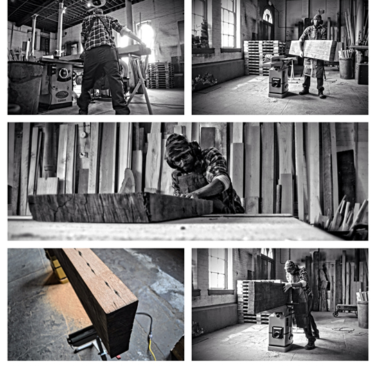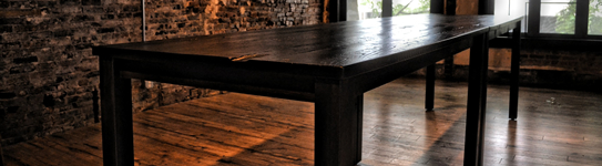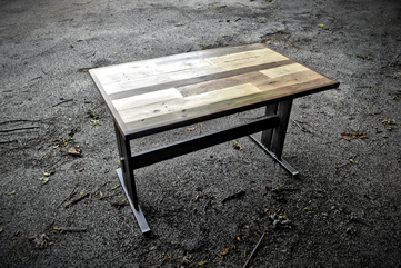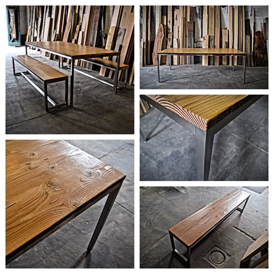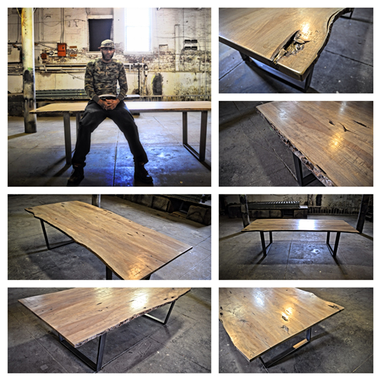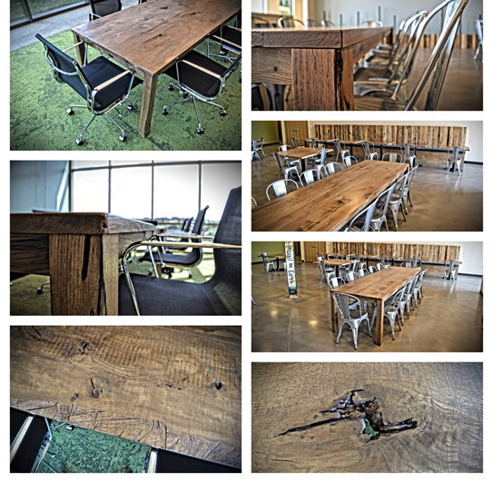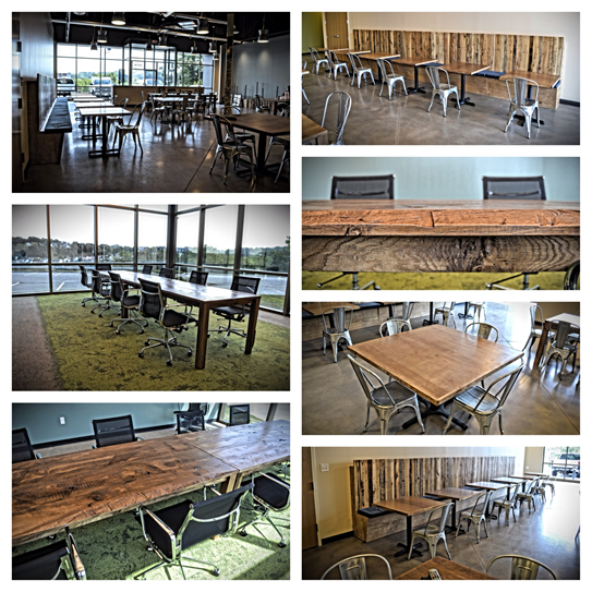 we’re fabricating one (1) custom, 10-foot-long, rustic conference table made out of STL-harvested wood and loaded with character, two (2) custom, 7-foot-long, rustic community tables, loaded with character and made out of STL-harvested wood for the lunch room, then ten (10) café-style tables in two different sizes made out of sustainably harvested, FSC-certified wood for the top and recycled black cast-iron for the base for the lunch room with a more clean and contemporary style.