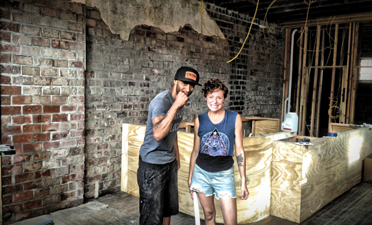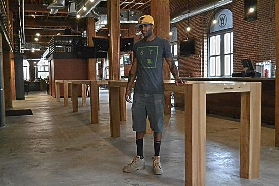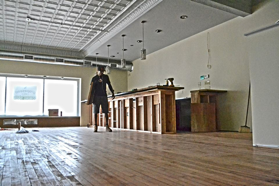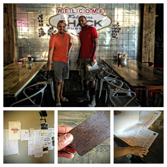 we're also fabricating and installing custom floating shelves for both bar back walls made out of locally foraged shipping pallet wood. finally, we will fabricate a very special dining table made out out STL-harvested, milled and kiln-dried wood for the restaurants very intimate, private dining area on the 2nd floor, which by-the-way, has a awesome private balcony overlooking south grand avenue.
