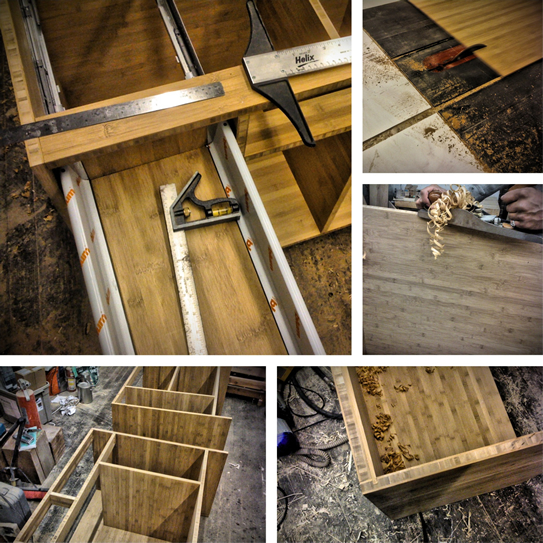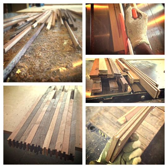 THE BAR / PHASE ONE / last week we completed styling the facade of the 14-foot bar we designed for THE LIBERTINE. the facade is clad with new and woodshop scrap FSC-certified woods including natural walnut, cherry, birch, maple, and red oak. i got a really good workout doing this install. i must have performed over 300 squats over the coarse of two non-stop hours going from the miter saw to cut the boards to size on the floor to the bar to position and secure the boards. turned out really nice. the boards were arranged in the moment and in the zone — i was feeling it. the wood countertop is next.