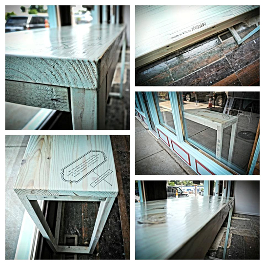 we were asked to design and build all the restaurant's 32 tables, design and build the entire bar, and design and build an extensive window bar. and as-per-youknowhowwedo, this project will focus on sustainably and locally hand crafted, healthy fabrication, to create a space-specific, one-of-a-kind look and feel. some feature ingredients include fabrication of all the 1-1/2" thick tables and bar tops out of 100-year-old maple wood, repurposed from old warehouse carts made in the late 1800's by Nutting® and acquired from an old paper mill in Chicago. all pieces and casework are finished with a zero-VOC, water-based clear satin topcoat finish.