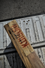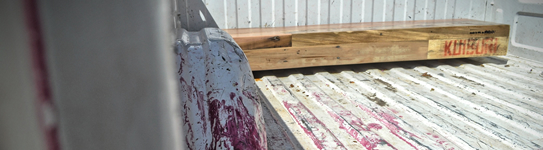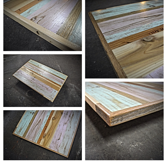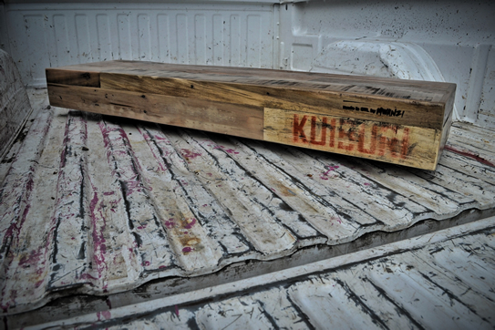 and there's more. we've also infused a single board made out of solid red oak that came from what are called "draft pallets", from St. Louis' own Anheuser-Busch. these pallets are not like the average pallets you may have seen. the boards are over 4" thick and carry their kegs across the country in trucks. these pallets are embossed with tebt;A-B Inc." and we have a bunch of these, so we'll use this wood in other projects.