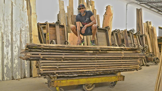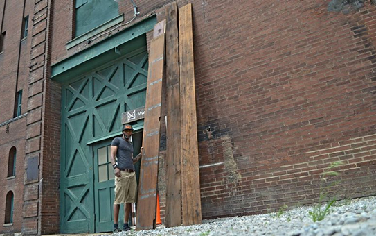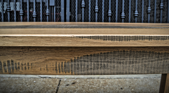 the Bey Chairs will be fabricated out of recycled raw steel for the chair frame to match the bar height Bey Chairs currently in their tasting room. however, we will introduce a different stream of wood category types — previously we used reclaimed barn wood siding to make the seat and back rest on their bar height Bey Chairs. among the woods this time around: repurposed shipping pallet wood, repurposed soda crate wood, St. Louis harvested and milled woods, but most notable, some repurposed wood from Jim Beam Bourbon and Jefferson's Bourbon whisky barrels. the barrels are made out of quarter-sawn, charred white oak. the white oak was more than likely harvested in the Missouri Ozarks — known around the world for its quality oak, then manufactured into barrels by one of the stave companies in the Ozarks region for Jim Beam and Jefferson's. the wood seat and back rest will be sealed with a zero-VOC, satin topcoat finish.