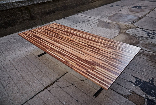 for these tables, we will use a combination of FSC-certified walnut and some ST.LOUIS-harvested walnut, and finish it with a zero-VOC, clear, satin top coat. see photos of one of the completed tables below. there are four table sizes and we're about halfway complete. to view play-by-play fabrication and installation photos of this project click here.