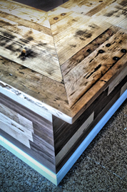 Chi asked that we design and build both bars in the restaurant with an emphasis on character wood in an effort to help create a sense of warmth and natural beauty in the space. and as-per-youknowhowwedo, this project will focus on sustainably and locally hand crafted, healthy fabrication, to create a space-specific, one-of-a-kind look and feel. some feature ingredients include fabrication of the 1-1/2" bar tops made from a mixture of 100-year-old maple Nutting® warehouse cart wood acquired from an old paper mill in Chicago and repurposed joists from a rehabbed building across the street from our showroom a couple blocks away from the restaurant. the facade of both bars will be clad with repurposed shipping pallet wood. we will also fabricate a series of 4" thick floating shelves for both back bars out of repurposed shipping pallet wood that we will then treat with a special chemical formulation we've developed to create a natural grey weathered affect in the wood. finally, we are designing and fabricating a special dining table for their private dining area on the second floor made entirely out of repurposed woods with some very special touches. all pieces and casework are finished with a zero-VOC, water-based clear satin topcoat finish. you can follow them on Facebook here