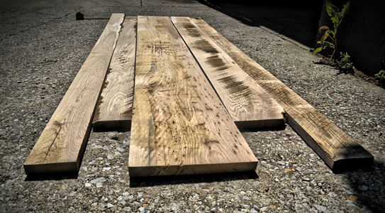 for these community tables, we will use solid white oak (see photos below) that were harvested, milled and kiln dried here in St. Louis. the tables will be solid wood with 1-1/2" thick tops and the legs will be 3"X3" solid wood square for a clean, solid table with lots of character, including saw marks, worm holes and knots. these community tables will also receive the same custom wood stain as the "restaurant style" tables we made. stay tuned.
